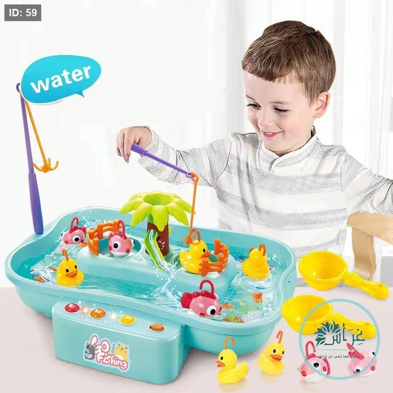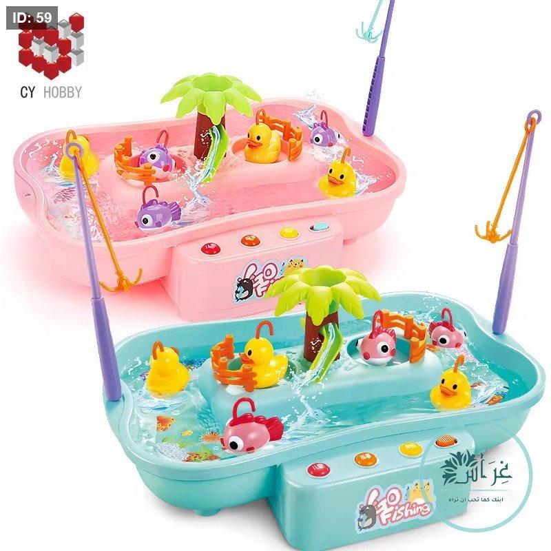 فيها بطّات ملوّنة عم تسبح بالمَيّ وتتحرك، والطفل بصيدهم باستخدام صنّارة أو شبكة بطريقة سهلة ومسلّية.