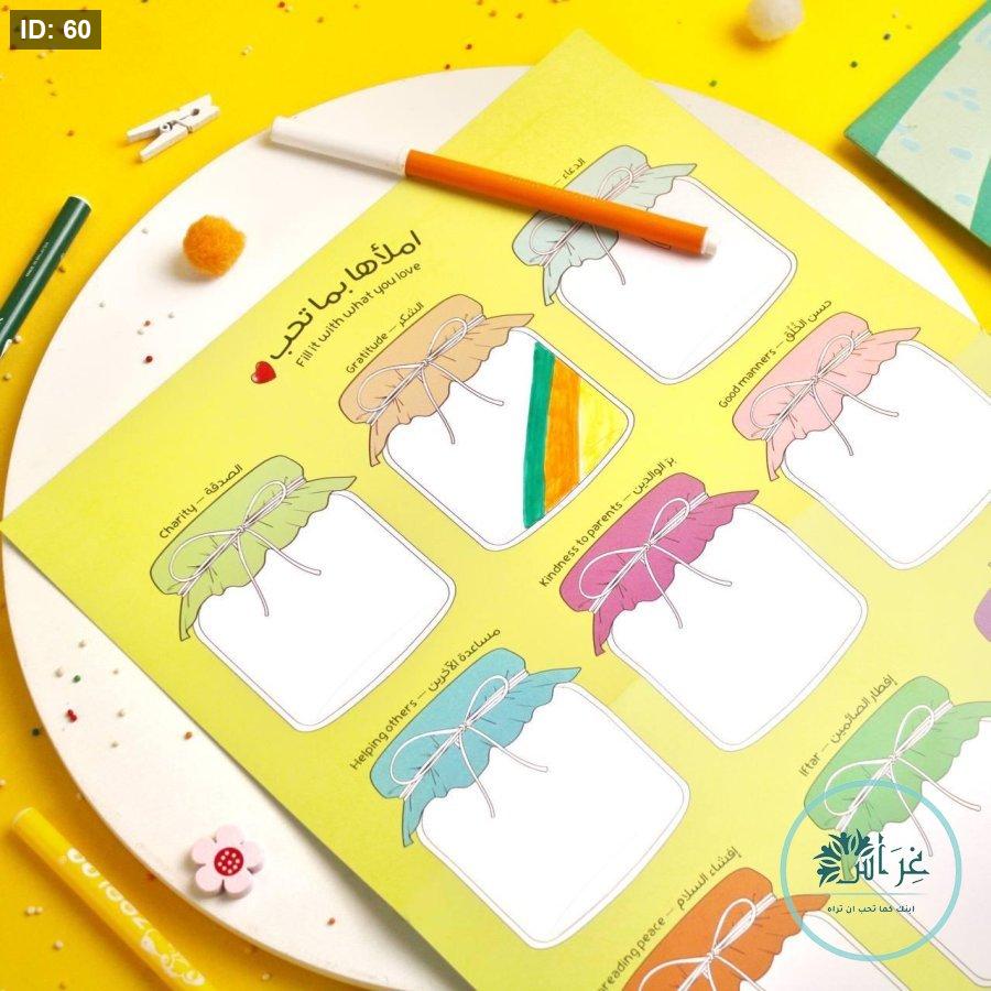 6 🍯 نشاط “املأها بما تحب”: برطمانات تمثل أعمالًا صالحة، يلوّن الطفل جزءًا منها مع كل عمل صالح حتى تمتلئ جميعها بنهاية الشهر 💛