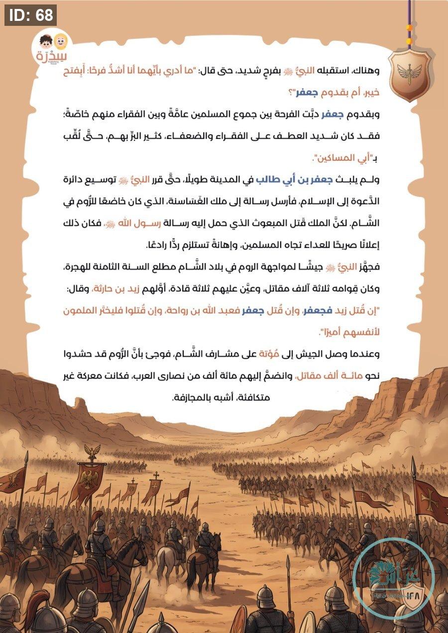 الكتاب 148 صفحة مقاس كبير مع مشاهد واقعية وانفجراف تعليمي يقرّب ابنك من حياة الصحابة وبطولاتهم ويخليه جزء من الحدث. 😉